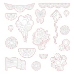Package contains 17 steel craft dies. Die set cuts around coordinating stamp set (sold separately). Dies are pre-clipped!Compatible with most die-cutting machines on the market today. Dimensions 3/4" x 7/8" Small Firework 2 1/8" x 3 1/8" Balloons